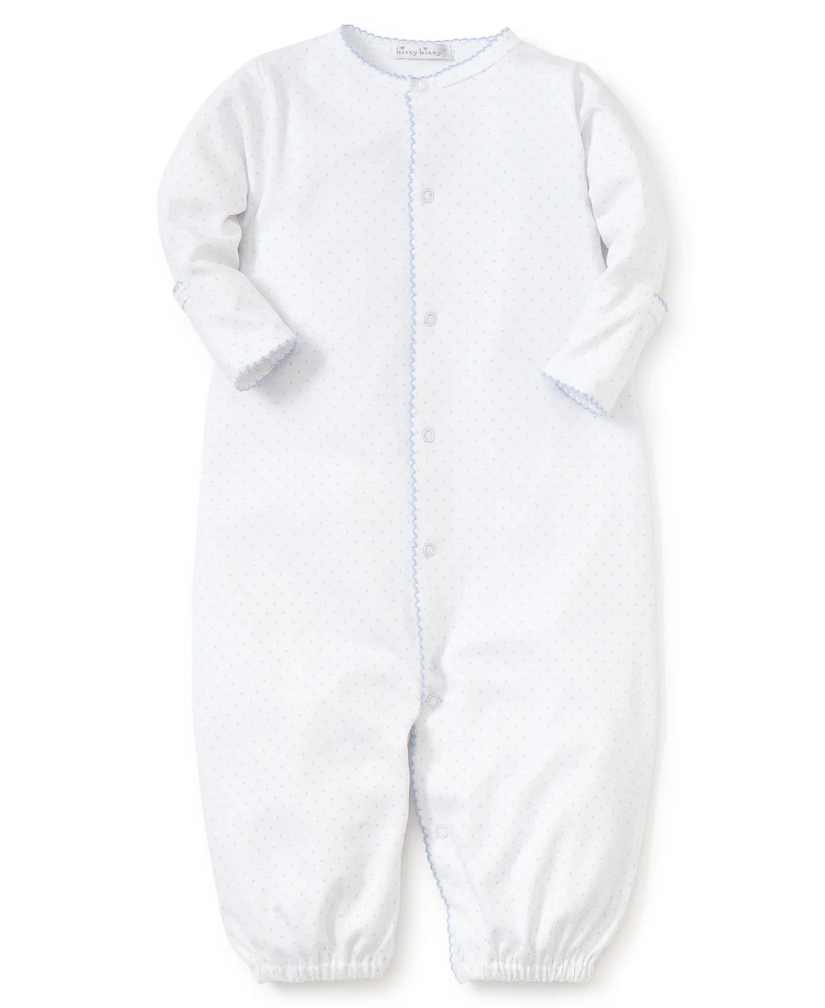 Our cozy converter gown features an allover dot print, and is made from 100% Pima cotton for the ultimate indulgence again baby's skin. Featuring snaps on legs for easy conversion to playsuit