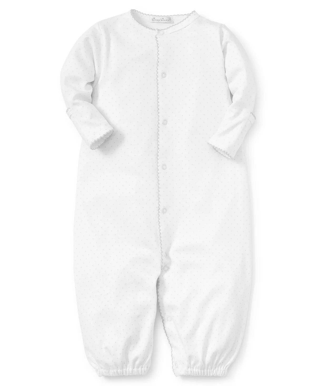 Our cozy converter gown features an allover dot print, and is made from 100% Pima cotton for the ultimade indulgence again baby's skin. Featuring snaps on legs for easy conversion to playsuit