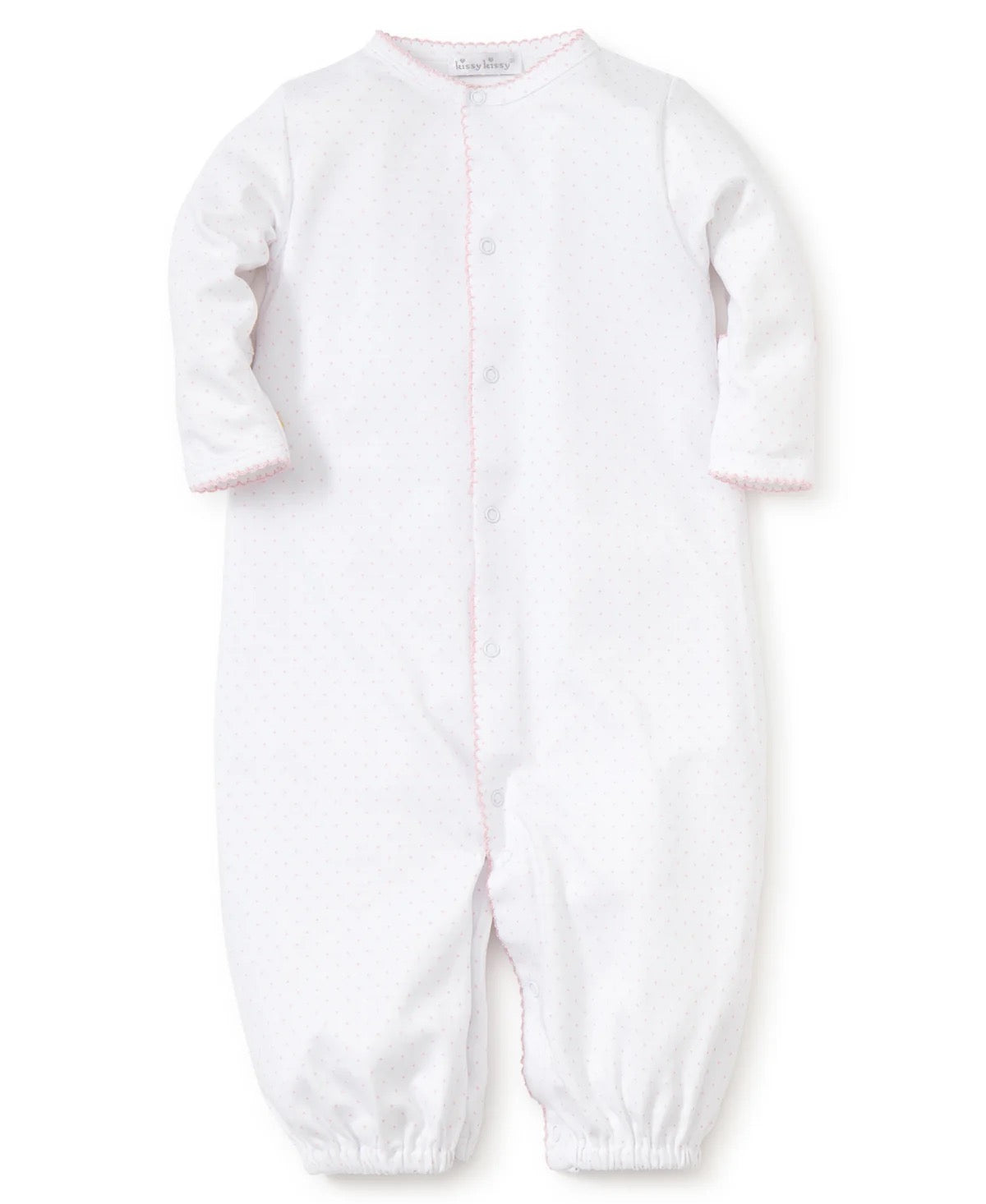 Our cozy converter gown features an allover dot print, and is made from 100% Pima cotton for the ultimate indulgence again baby's skin. Featuring snaps on legs for easy conversion to playsuit