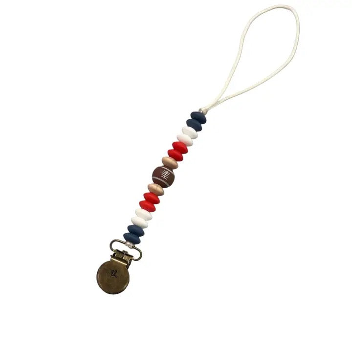 BPA Free, non-toxic, food grade silicone and natural beech wood teether clip. The clips will hold both a paci as well as other items such as sippy cups, toys, and other items to the stroller, car seat, baby, and diaper bag.