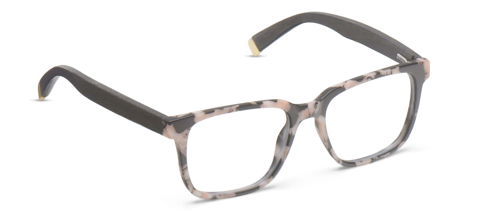 Casual, cool, and eco-friendly. This dynamic frame features two distinct textures: natural Zebrawood temples and a matte marble face. Want-worthy colors and gold metal accents effortlessly take Harvest's nature-inspired look to the next level.