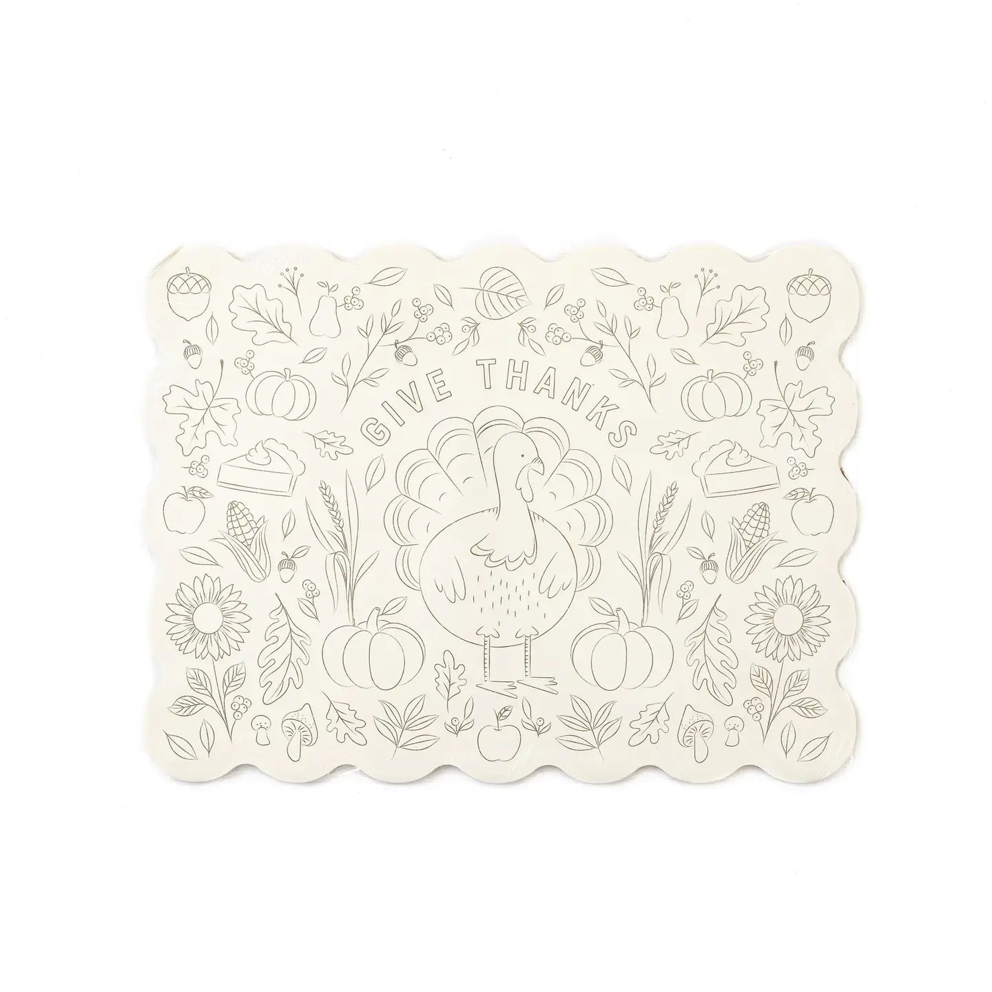 Make the kids' table the place to be with these festive coloring placemats. Featuring a whimsical turkey and festive sentiment "give thanks" these placemats are sure to be a favorite focal point of your Thanksgiving table for your loved ones both young and old