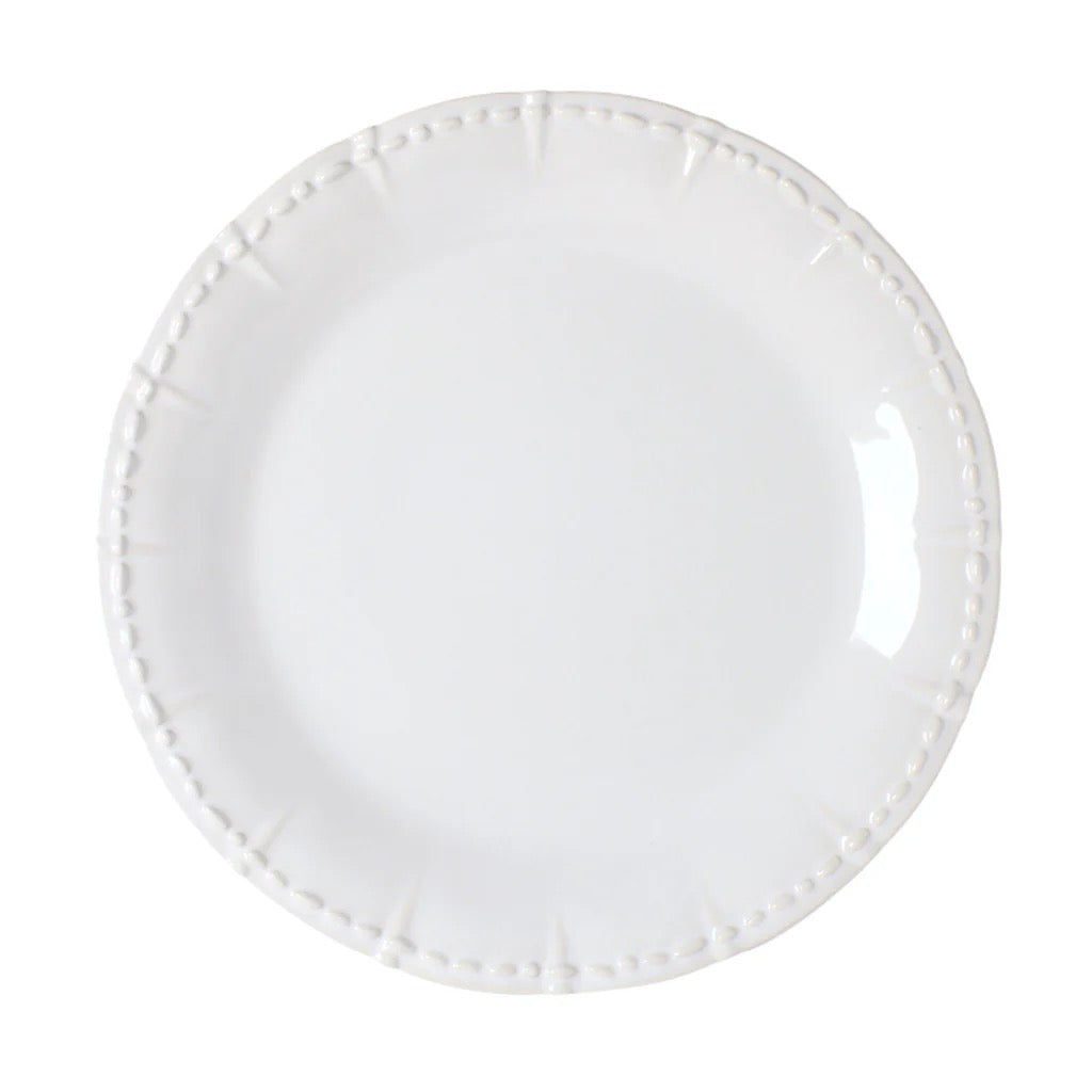 The round dinner plate in Historia Paperwhite is as durable as it is beautiful. Clean and sophisticated, this dinner plate is perfect for family dinners in the kitchen, or paired with silver and crystal, for a dazzling dining room special occasion. Handcrafted in Portugal of ceramic stoneware. Freezer, oven, microwave and dishwasher safe.