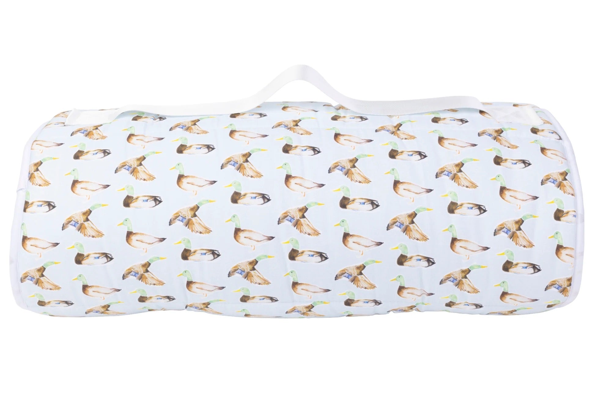 Have no fear about your child sleeping on the ground at school - The Nap Mat is pure luxury! Made from cotton with soft bamboo pillowcase and blanket inside, and poly fill throughout. Plush and comfortable, your toddler is sure to get great rest. Shoulder strap is two inches wide to allow plenty of room for embroidery.