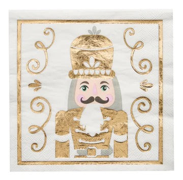 Elevate your holiday table into a professional tablescape with our new Gilded Nutcracker collection. These nutcracker cocktail napkins with shimmering gold foil accents will add a touch of glitz and glam to your holiday meal. With sleek design elements and charming details, your guests won't believe that they're disposable!