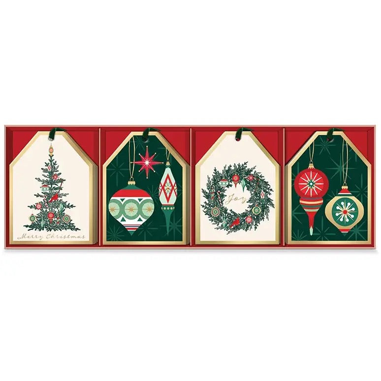 Gift Tag Set Boxed Set Of 16 Die-Cut Gift Tags With Gold Foil Accents And Velvet Ties. 4 Each Of 4 Designs. Tag 3" X 4" · Box 13" X 4.25" X 0.75"